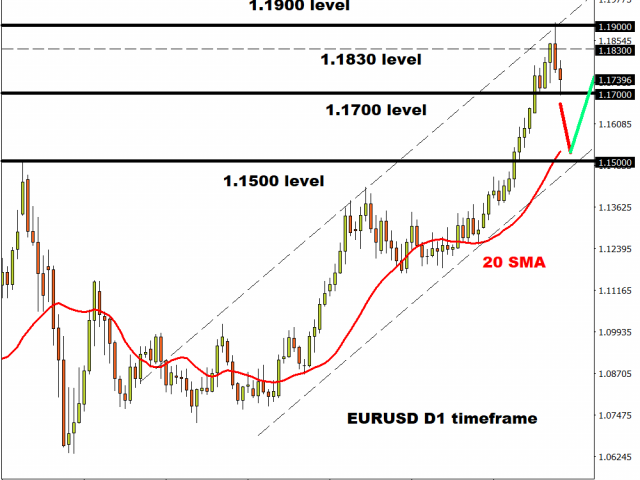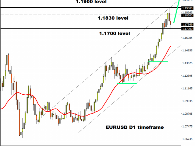 Alternatively, a breakdown below 1.1700 may trigger a steeper pullback towards 1.1500 before the EURUSD continues its journey north.