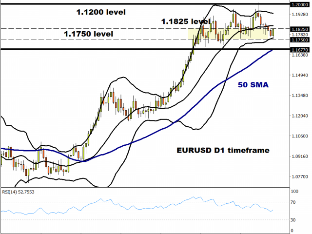 After six straight days of declines, the single currency has stopped the rot and EUR/USD is being supported by the bullish trendline from May. First support comes in around 1.1750 before the 50-day MA at 1.1677.