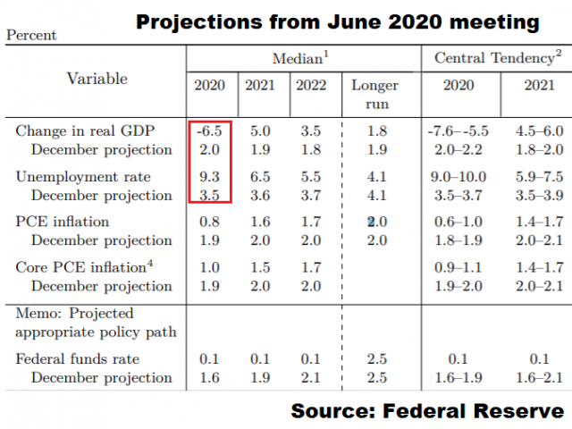 Back in June, policy members projected GDP to decline 6.5% in 2020 while unemployment was seen rising 9.3%. However, the current unemployment rate of 8.4% is already below the medium forecast – something that could allow the Fed to express some confidence over the US economy.