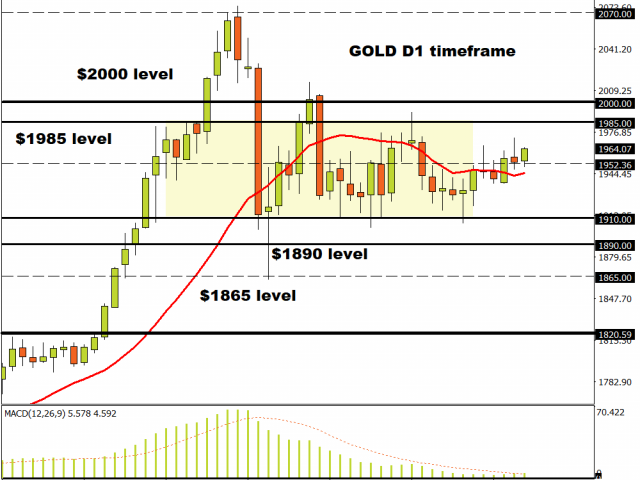 Looking at the technical picture, strong support can be found around $1910 and resistance around $1985. The solid daily close above the $1952 intraday resistance level may open the doors towards $1985. If $1952 proves to be unreliable support, prices may decline back towards $1910.