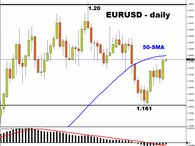 Investors are also looking ahead to speeches by Fed Chair Jerome Powell and ECB Chief Economist Philip Lane, who will deliver keynote addresses at the NABE conference today. Should either of them provide more clues on either the Fed or the European Central Bank’s monetary policy response to the global pandemic, that could also prompt moves in EURUSD and the Dollar index, with the Euro accounting for 57.6 percent of the DXY. EURUSD has been able to bounce off the 1.161 level in late-September, and is now set to test its 50-day simple moving average (MA) as a resistance level.