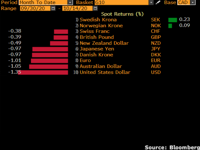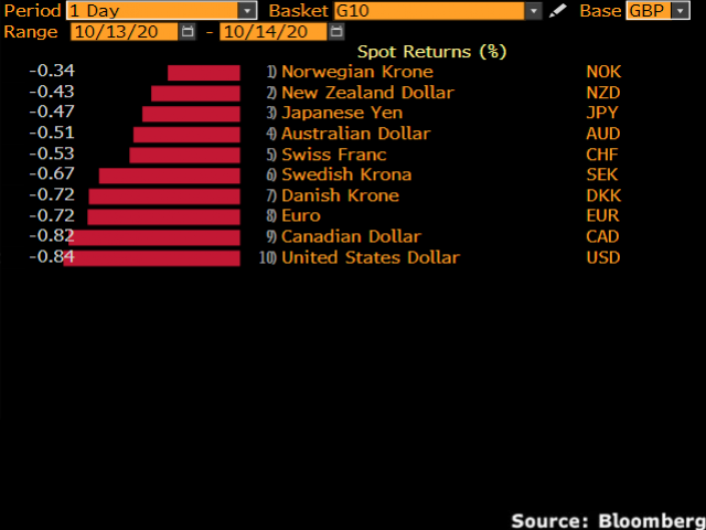 GBP is the strongest performer on the day and now flat on the week versus the mighty Dollar following reports that the UK is ready to extend EU trade negotiations past PM Johnson’s self-imposed deadline of tomorrow. Boris will make a final decision on whether to continue talks after the EU Summit concludes on Friday and after his high-level call today with the EU Commission President.