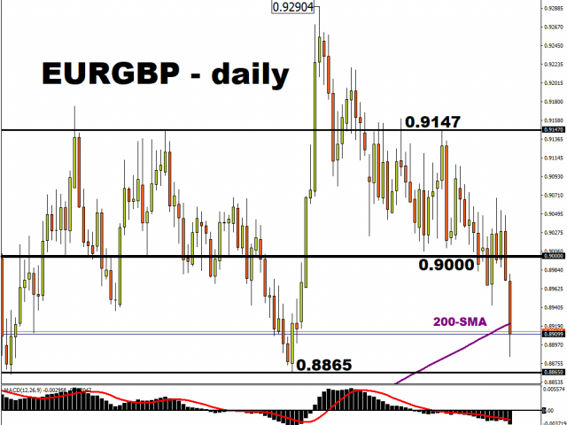 EUR/GBP has broken decisively through cycle support below 0.90 and looks to be heading towards the September and June lows around 0.8860/70. The 200-day Moving Average sits just above at 0.8921.