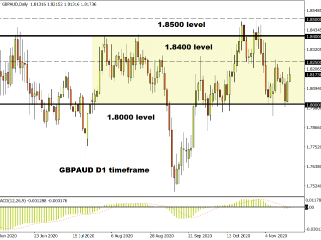 The pound remains in a wide range against the Australian Dollar with support at 1.8000 and resistance at 1.8400. An intraday breakout above 1.8250 could trigger an incline towards 1.8400. If 1.8250 proves to be reliable resistance, prices have scope to decline back towards 1.8000.