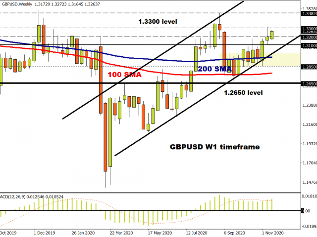 It has been more than two years since the GBPUSD traded above the 1.3500 level. The upside momentum may notch up a gear if 1.3500 is conquered on the monthly timeframe. A solid close above this point may trigger a move towards levels not seen since April 2018 above 1.4300.