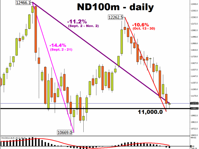 Investors are set to carry a weight of anxiety on their shoulders as they enter the US elections week, after nerves have been left raw by the steep selloff in October. The new trading month however could kick off with tepid gains, as Nasdaq 100 futures edge into the green during the Asian morning session and attempt to claw its way out of a technical correction once more.