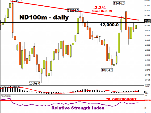 The Nasdaq 100 Minis remain some three percent away from its highest record closing price, registered on September 2nd. Still, the index appears to be narrowing the gap, and has more room to climb before reaching overbought levels as per its 14-day relative strength index.