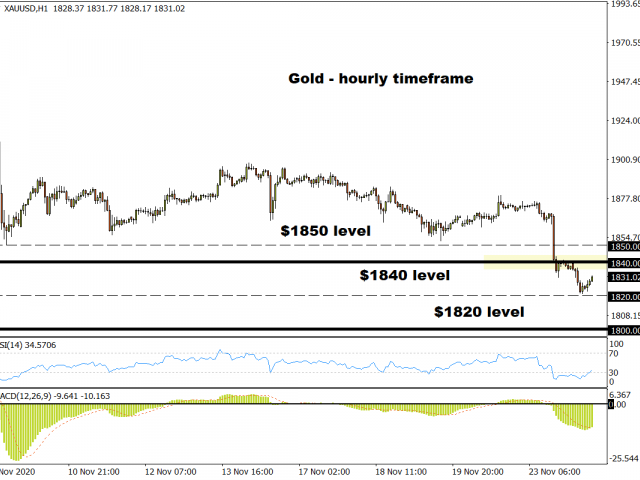 For those who are focusing on the shorter timeframes, there are some interesting developments on the hourly charts. An intraday rebound towards the $1840 level could be on the cards. Should this level prove to be reliable resistance, prices may decline back towards the $1820 level. If the risk-on mood further dampens appetite for the safe-haven asset, prices may break below $1820 with the psychological $1800 a key point of interest.