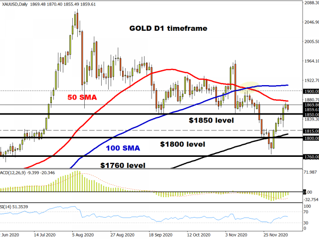 The $1850 resistance could transform into dynamic support. This may open the doors towards $1900. Should prices slip back under $1850, prices are seen declining towards $1815.