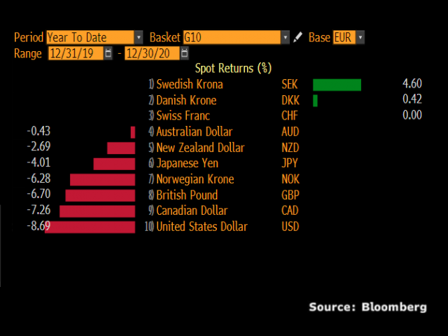 The Yen is on the path to concluding 2020 gaining almost 5% versus the Dollar.