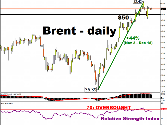 Similarly, Brent Oil had gained 44 percent during that same 7-week period, before consolidating after such a rapid ascension. Brent futures registered a 0.8 percent decline yesterday and is now striving to erase those losses.
