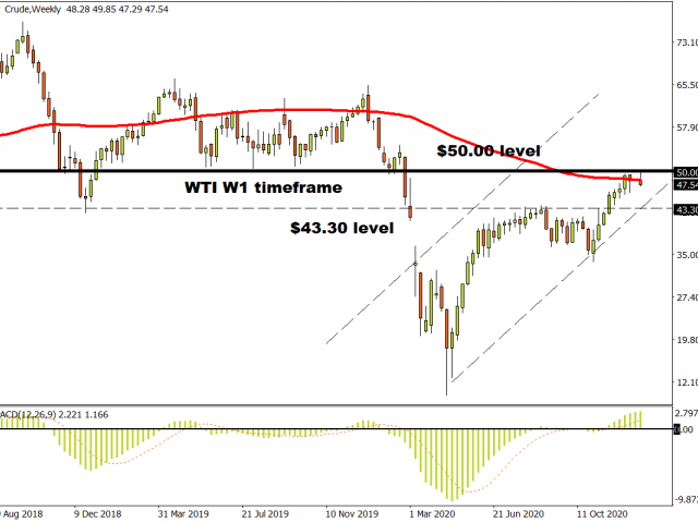 Looking at the technical picture, Oil prices are down almost 2% today thanks to lockdown fears. WTI Crude is trading around $47.60 as of writing while Brent is marginally below $51.00.