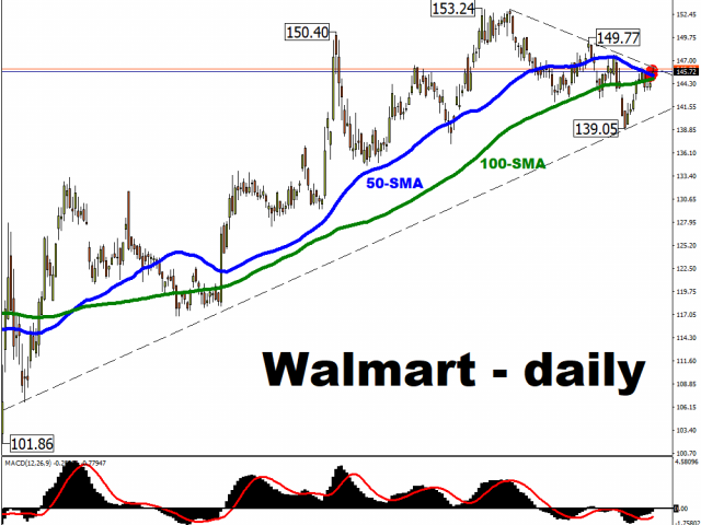 In the lead up to the earnings announcement, Walmart’s share prices have breached the resistance that had been offered by its 50-day simple moving average (SMA). Walmart’s share prices must climb back above its January high of $149.77 in order to send a strong message to markets that it can arrest its downward trend from the past couple of months.