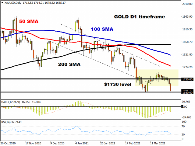 But this is not good news for gold bugs who are suffering today after a bad start to the week on Monday. $1,700 offered little support and all eyes are now on the cycle low below at $1,680. If bond yields keep going higher, then expect to see new lows with the mid-$1,500s the next line in the sand.