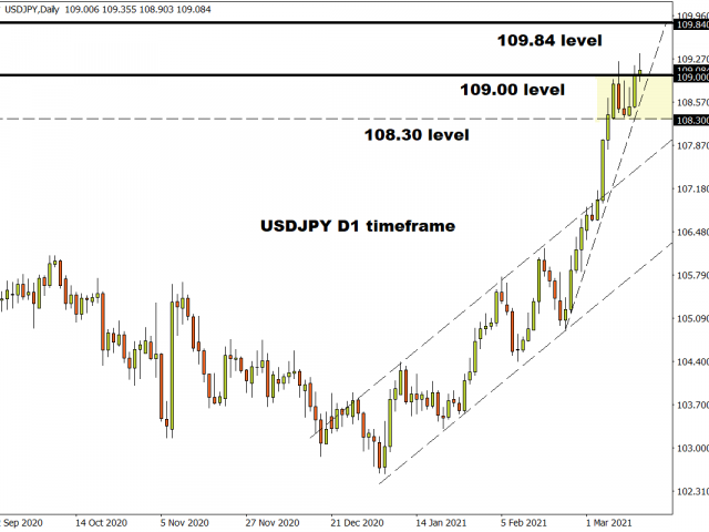 USDJPY wobbles above 109.00