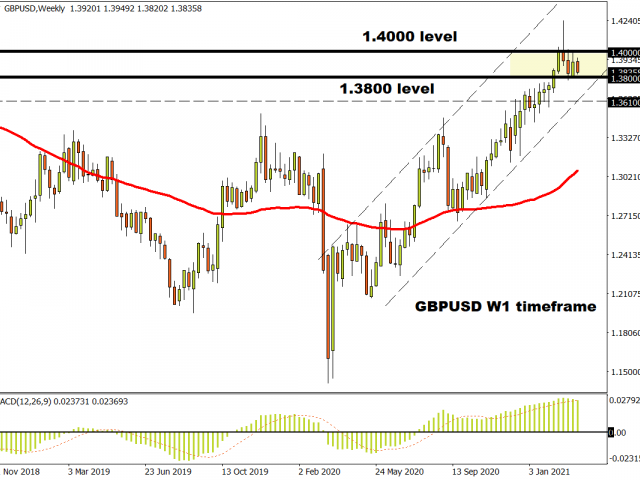 There have been consistently higher highs and higher lows on the weekly timeframe. A technical pullback towards 1.3610 could be on the cards once prices break below 1.3800.