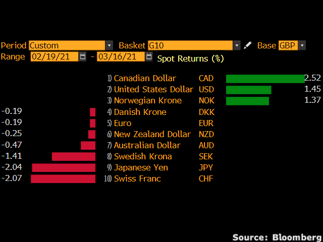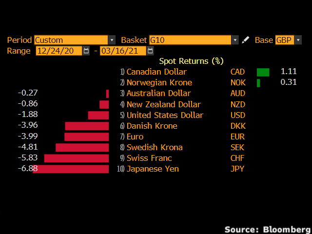 The currency remains in a position of power due to the massive reduction in Brexit-related uncertainty, improving economic outlook, and vaccine rollouts. Sterling is up against almost every single G10 currency since December 24th, 2020 – when the EU and UK reached a post-Brexit deal.