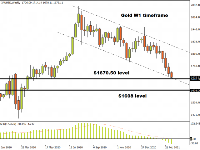 But the weekly and monthly timeframe suggest further downside with $1670.50 and $1608 acting as key levels of interest.