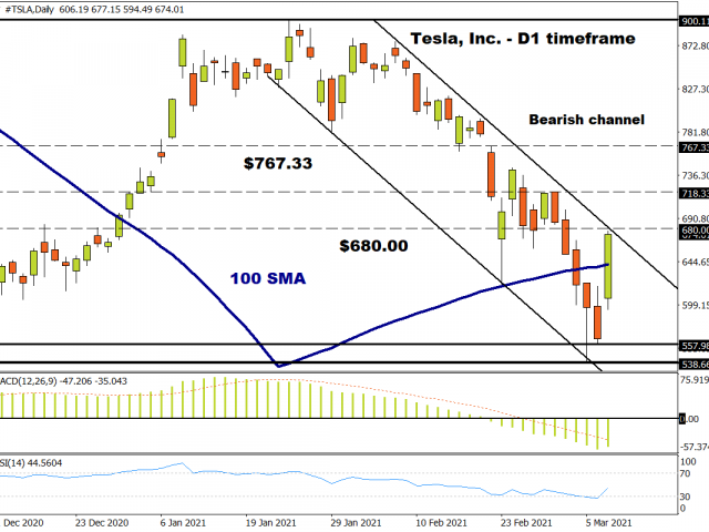 - Buying sentiment towards Tesla shares was boosted by a rally in Bitcoin. Remember when Tesla announced that it bought $1.5 billion worth of bitcoin and said it would start accepting the cryptocurrency as a payment method for its product? Well, the company stocks are now strongly linked to the performance on Bitcoin!