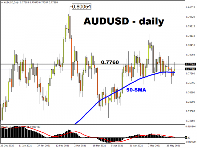 AUDUSD initially popped higher above 0.7760 but has since given back these gains.