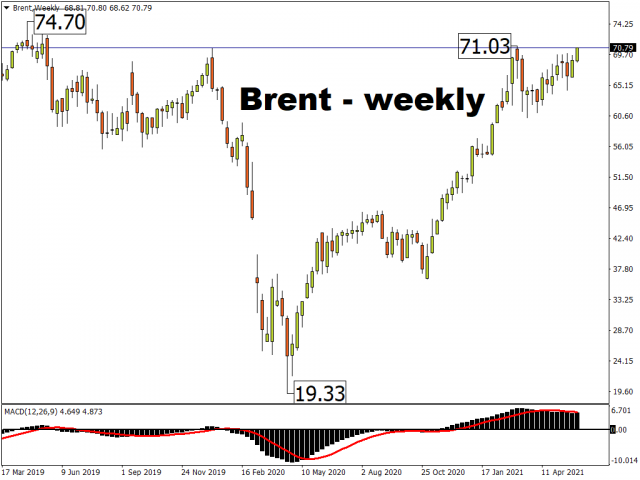 The year-to-date March high for Brent at $71.03 is firmly in view and then the spike high in April 2019 at $74.70, if bulls can hold prices up here and we get helpful news from the cartel.
