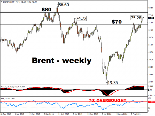 Still, come Thursday, a smaller-than-expected output hike of fewer than 550,000 barrels per day in August could send Brent prices even higher and closer to the psychologically-important $80/bbl mark.