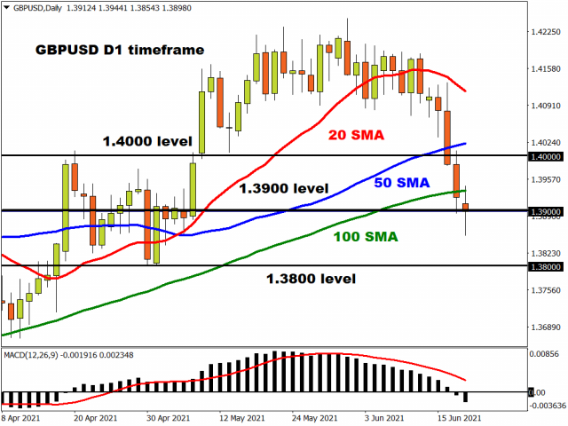 The ECB will be happy to distance itself from the Fed with its currency falling and so keeping financing conditions loose through the summer. With a Fib level around 1.1950 (38.2% of this year’s high to low move) taken out yesterday, the next support level comes in around the psychological 1.19 mark before 1.1835.