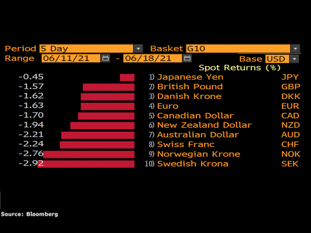 Never bet against all the doubters who say the mighty dollar is down and out? (Or even many esteemed Wall Street analysts who forecast the greenback would sink all year due to structural issues and deficits). The world’s reserve currency is heading for its best week in nearly nine months after the surprise change in tone from the Federal Reserve on Wednesday continues to rattle markets and fundamental positioning.