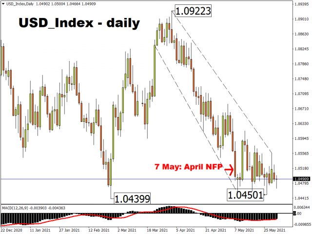 Given the uncertainty surrounding what the official nonfarm payrolls would be this Friday, the US dollar may not see a sizeable move over the coming days, barring an unexpected market-moving event. Then again, the dollar also may offer a tepid response if the official figures come close to the expected 653,000 figure. Between now and Friday, investors worldwide will also get more clues on the state of the US jobs market from the ADP employment figures and the weekly jobless claims, both due this Thursday, 3 June.