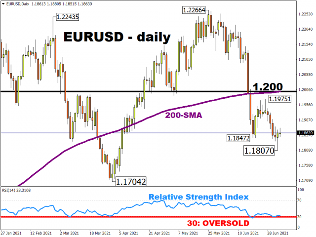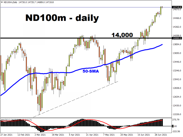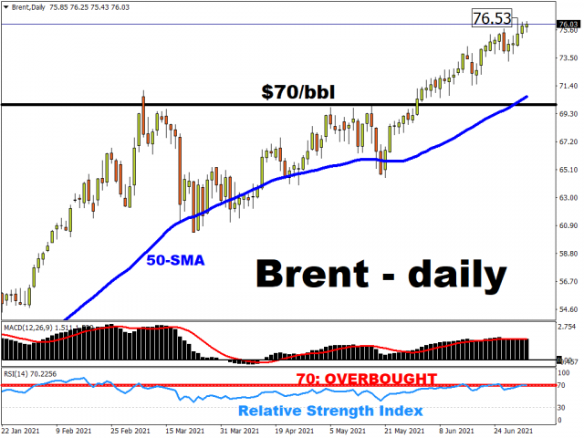 Today is Independence Day holiday in the US which means liquidity is low and markets quiet. We’ve seen mixed stock markets in Asia earlier today while European bourses are in the green. There certainly seems to be a lack of worry about rising rates and tapering with bond yields moving lower and the surge in the Delta variant generally overlooked.