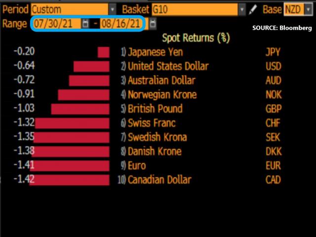 Such is the impact from the island nation’s first community case since February that it forced a three-day lockdown across New Zealand. Today’s shock announcement was all it took to undo a lot of the month-to-date gains that the kiwi had against several of its G10 peers, especially currencies deemed as safe havens such as the Japanese Yen, US dollar, and the Swiss Franc.