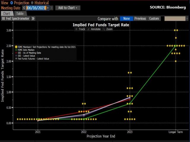 - Dot plot (which conveys where each FOMC member thinks interest rates would be over the coming years. In June, 7 of 18 members already pencilled in a 2022 hike.)