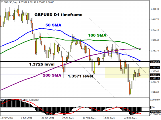 This means there is not much to push back on this fairly aggressive rate hike pricing. The high inflation story contrasts with multiple economic tailwinds (fuel, energy and food shortages, Brexit) that are expected to hit the UK in the coming months. The rise in GBP/USD stalled yesterday at 1.3673 and we are back into the range trading around 1.36. The July low at 1.3571 offers the next line of support while the 50-day moving average looms above at 1.3725.