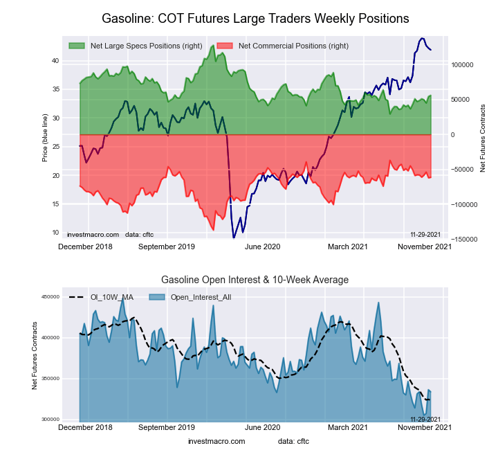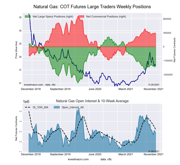 The latest COT data is updated through Tuesday November 23rd 2021 and shows a quick view of how large traders (for-profit speculators and commercial entities) were positioned in the futures markets.
