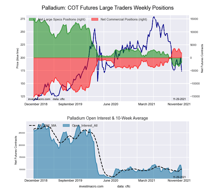 The Palladium Futures large speculator standing this week totaled a net position of -1,766 contracts in the data reported through Tuesday. This was a weekly advance of 272 contracts from the previous week which had a total of -2,038 net contracts.
