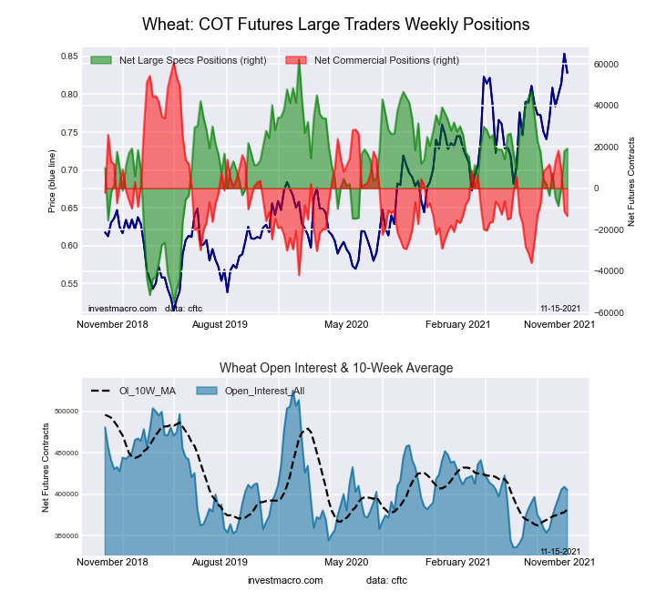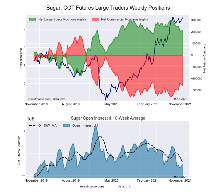 The latest COT data is updated through Tuesday November 9th 2021 and shows a quick view of how large traders (for-profit speculators and commercial entities) were positioned in the futures markets. This week’s reports are delayed due to last week’s Veteran’s Day holiday.