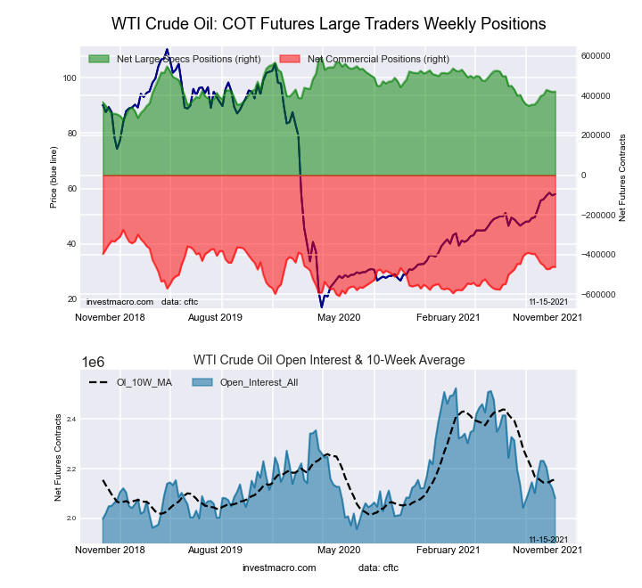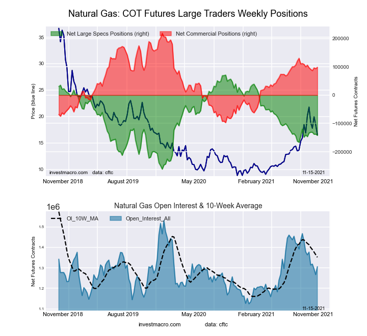 The latest COT data is updated through Tuesday November 9th 2021 and shows a quick view of how large traders (for-profit speculators and commercial entities) were positioned in the futures markets.