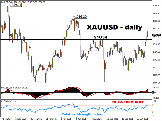 After gold smashed through resistance at $1834, prices remain near the recent highs around $1860. Major support has come in the form of US 10-year real yields falling to record lows at minus 1.25%. Of course, the bumper US inflation has also seen the dollar surge, with traders raising US rate hike expectations for next year.