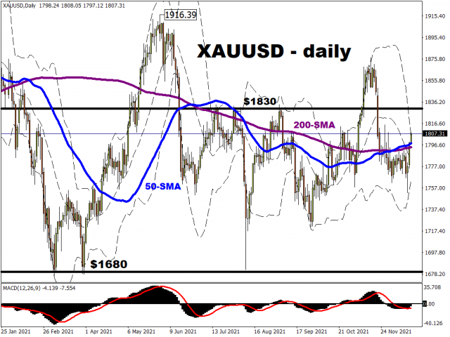 Gold bugs welcomed the move lower in the dollar and the precious metal has moved above $1800 for the first time in over two weeks. Both the 50-day and 200-day simple moving average should offer support around $1789. The first upside target and resistance comes in at $1830.