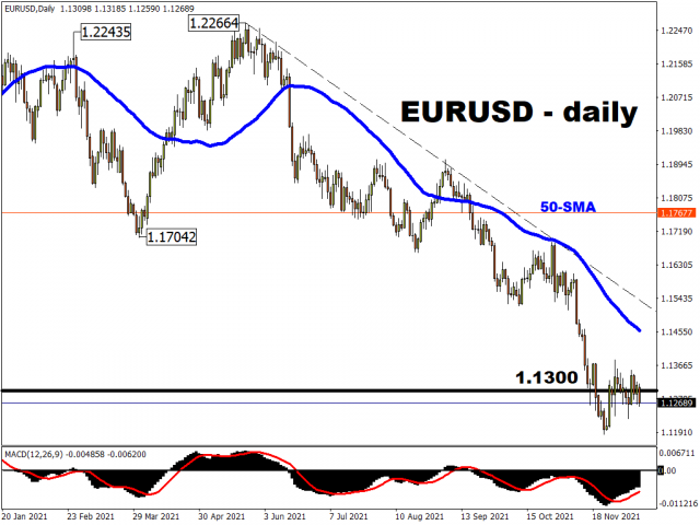 The euro has traded around 1.13 since the end of November. Its failure to make a decent run at the 1.14 level points to the downward trend reasserting itself.