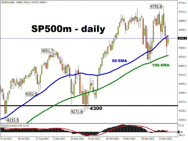 The S&P 500 will be attempting to end a 3-day losing streak, with buy-the-dip agents triggered into action once more as the blue-chip index neared its 100-day simple moving average (SMA). This key technical indicator had earlier this month already provided support for the benchmark index for US stocks before sending it onto a fresh record high. Bulls will be hoping for a recurrence before the curtains are brought down on 2021.