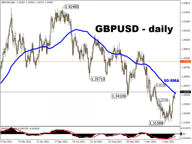 Meanwhile sterling continues to build on its pre-Christmas gains. Bets on the Bank of England hiking rates four times next year has boosted GBP with traders expecting a slight overshoot to rein in inflation.