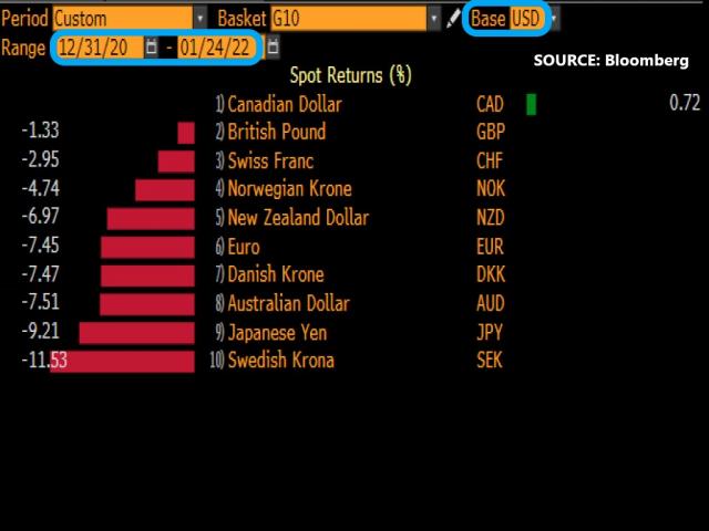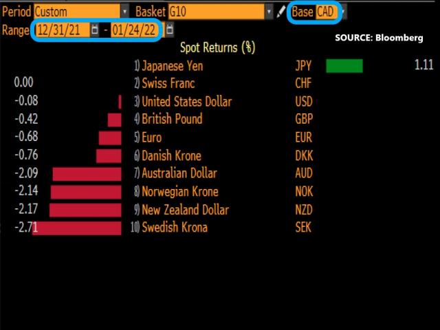 Go further back to the end of 2020 and you’ll also find that the CAD is the sole G10 currency that has advanced against the greenback since.