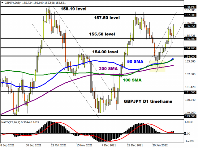 The GBPJPY remains in a healthy bullish trend on the daily charts after bouncing from the 50,100 and 200 Simple Moving Averages. A weaker Yen may inject GBPJPY bulls with enough confidence to challenge the 157.50 resistance level. Should prices secure a daily close above this point, the next key point of interest will be found around 158.19. Alternatively, if 157.50 proves to be a tough nut to crack, prices are likely to decline back towards the 155.50 support.
