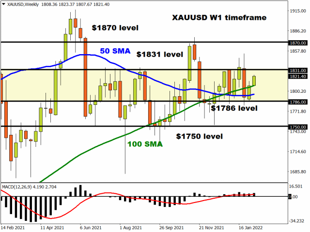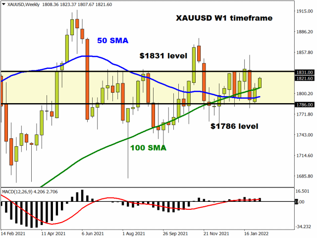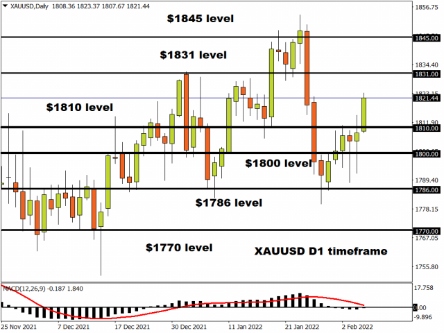 Zooming in on the daily charts, the breakout above $1810 has paved a path towards $1831. Beyond this point, the next key levels of interest can be found at $1845 and $1870. Alternatively, a decline below $1810 may trigger a selloff towards the psychological $1800 level and $1786.