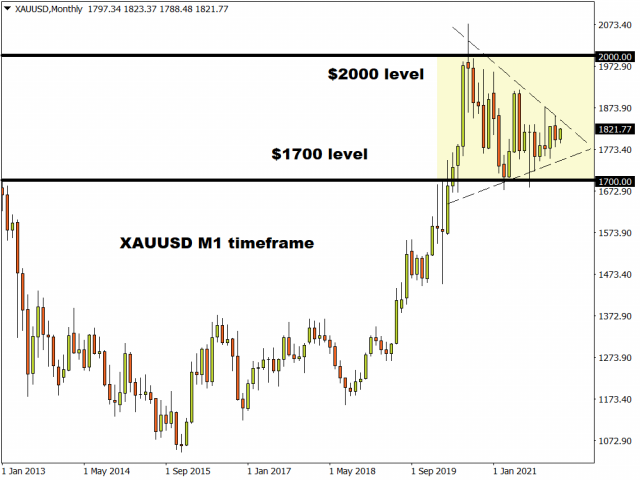 Ultimately for bulls or bears to snatch back full control, some major movements need to happen on the monthly timeframe. Key levels of interest can be found at $1700 and $2000.
