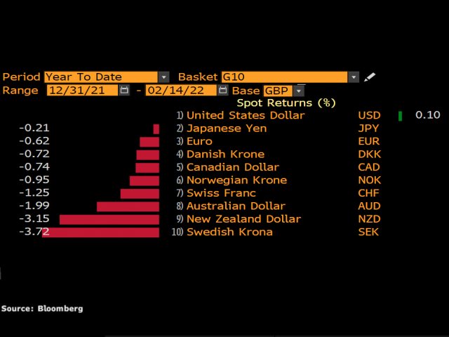 Retail sales will be in focus on Friday with markets expecting sales to rebound in January following the 3.7% decline seen in the final month of 2021. Given how consumption remains an engine of growth, a strong figure is likely to boost sentiment towards the UK economy. According to Bloomberg estimates, retail sales are forecast to rise 1.1% MoM in January and 9.3% YoY.