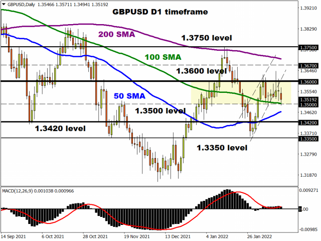 Investors will closely scrutinize the minutes for any new insight on rate hikes, the inflation outlook, and any discussions on its balance sheet. Should the minutes strike a hawkish tone or signal that the Fed could be considering raising interest rates larger-than-expected in March, this could boost the dollar. Such a development has the potential to spark volatility on the GBPUSD with prices potentially dipping below 1.3500 as a result.