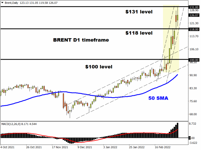 Brent crude punched above $131 on Tuesday as the United States and Britain moved to ban Russian oil imports. Given how such a move is likely to squeeze supply and create further disruptions in the global energy market, this could propel the oil prices even higher.