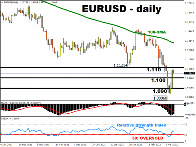 potentially EURUSD being boosted back above 1.11, and testing the January-2022 low of 1.11214 for resistance.
